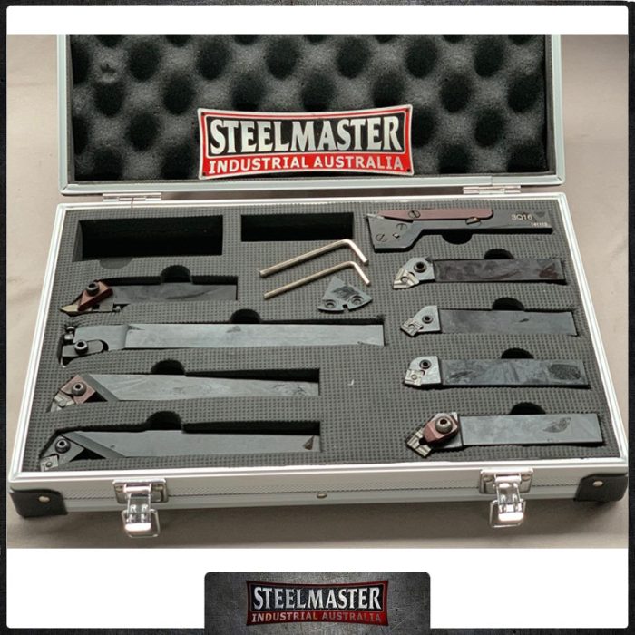 These 9-piece turning tool sets are ideal for just about any project. Supplied with right hand and left hand turning/facing tool holders, the set is complimented with one threading and cut-off tool too. Indexable inserts ensure cutting surfaces stay sharp.