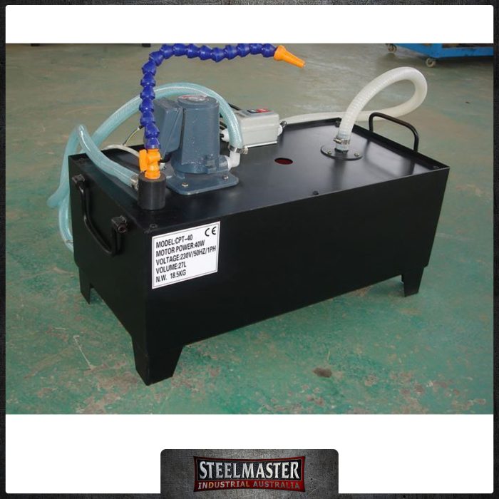 Add this complete 27 Ltr Tank System to any metal cutting machine for efficient cutting, reduced tool wear and better finishes. Includes pump, magnetic switch, steel fabricated enclosed tank, coolant return hose and flexible nozzle with magnetic base.