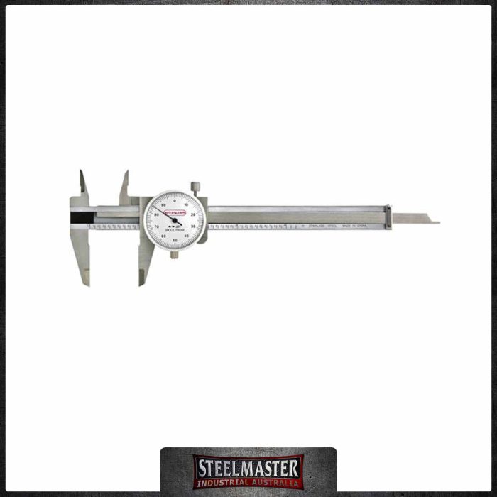 Traditional dial caliper features a 300mm measuring range with 0.02 increments. Hardened knife edge, inside and outside calipers plus step gauge and knurled thumb roll make this dial caliper a mainstay in any shop. This Dial Caliper features stainless steel construction and is shock proof and dust proof.