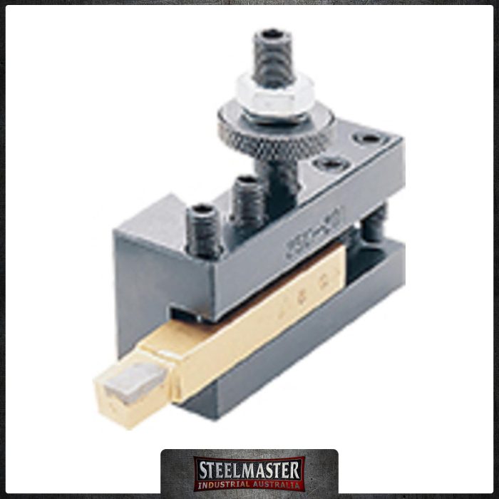 Our quality Tool Posts are well known for their lasting repetitive accuracy and time-saving setup. Rugged construction means there’s no chatter or vibration. A patented locking device assembly and sliding tapered gib eliminates tool post indexing, so there’s no indexing balls and shims, and there’s no need to disturb the basic set-up. We offer complete sets or individual tool posts and tool holders. Just match the Tool Posts to your lathe size.