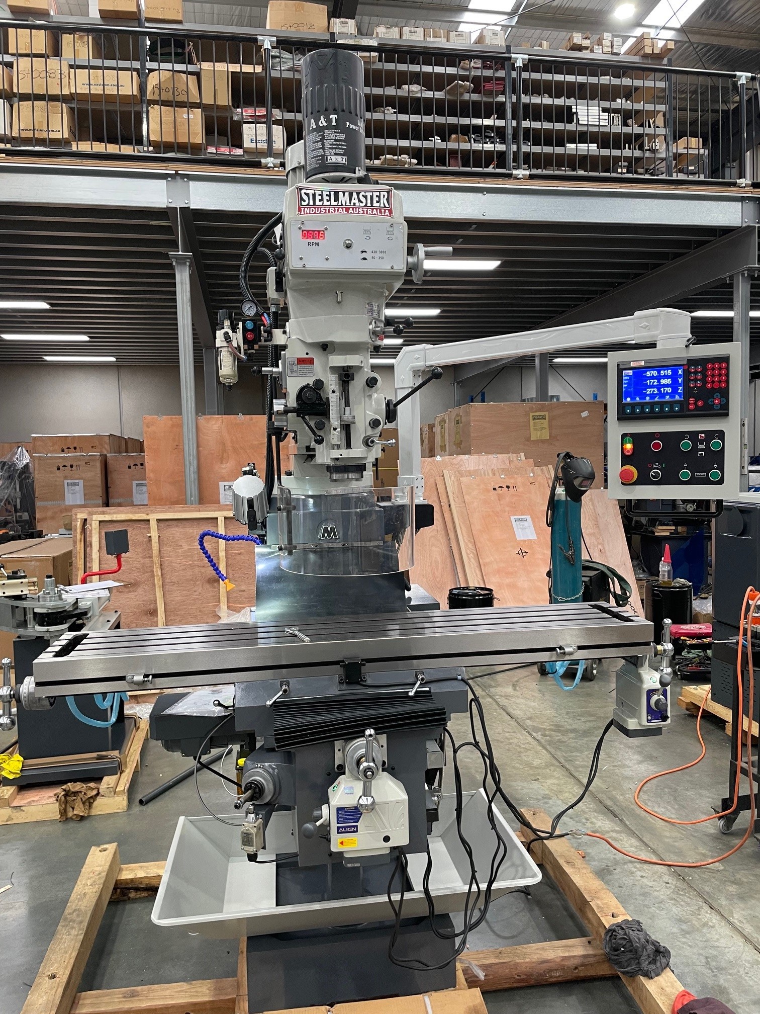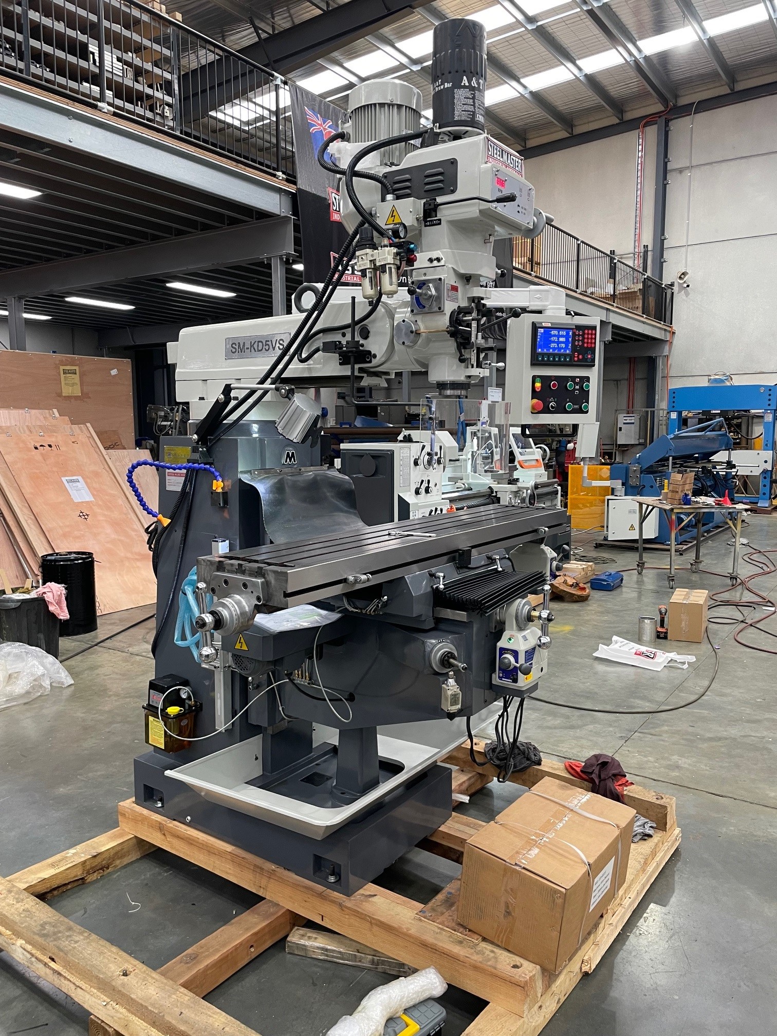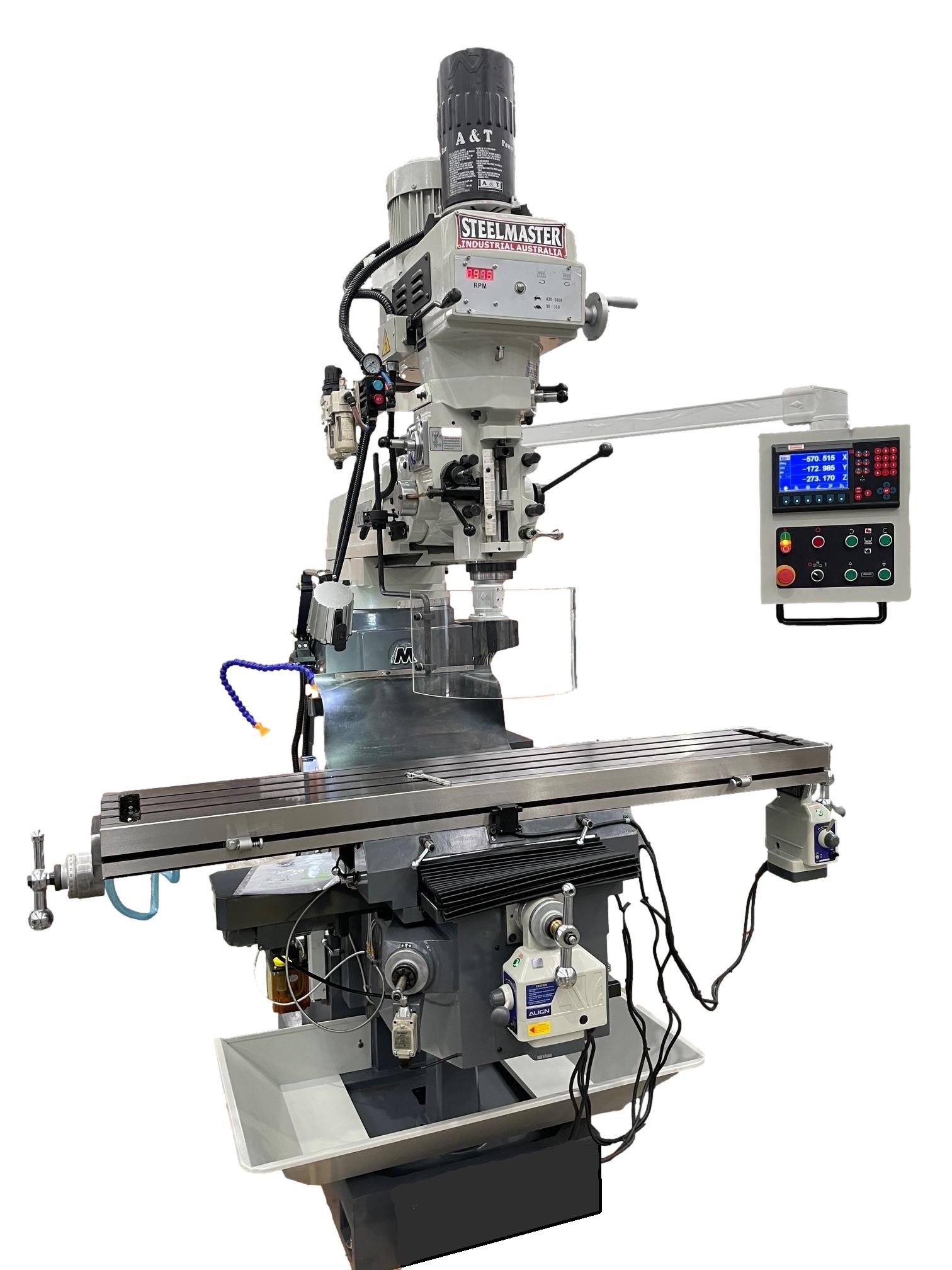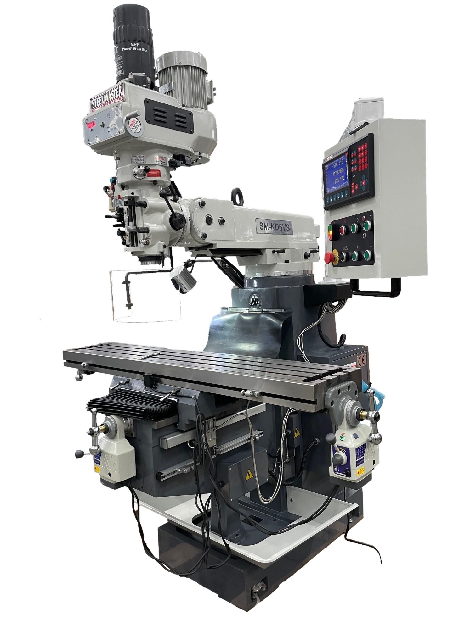 SM-KD5VS. Turret Mill Steelmaster. Pwr Draw Bar, ISO40 Spindle, 2 Axis Power Feed, 3 Axis DRO