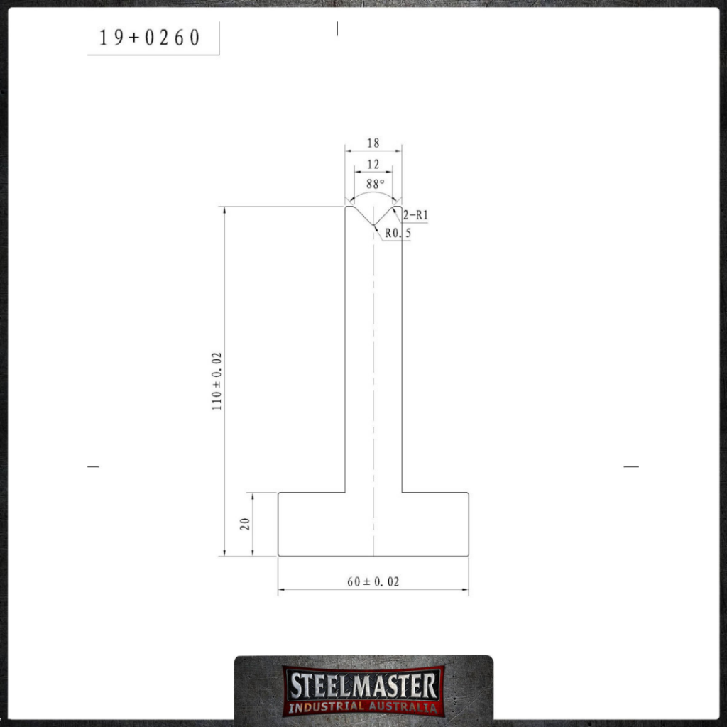 SKU: 19+0260Categories: 120MM High Tooling, 19-0814, Bottom Dies, Pressbrake Tooling & Accessories, Sheetmetal / Metalworking Accessories